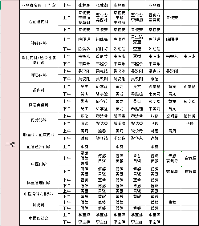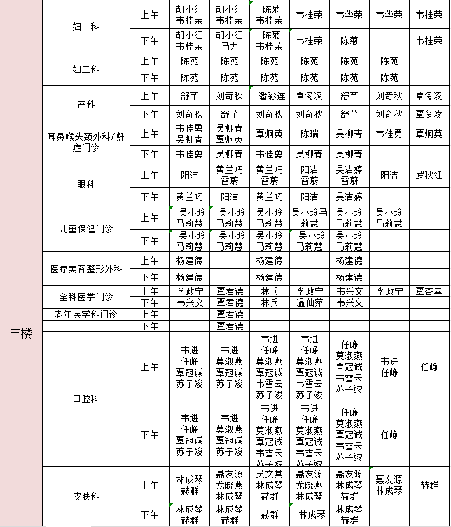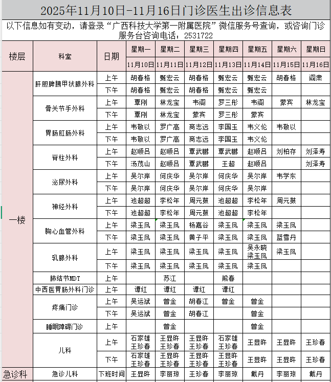 2025年11月10日-11月16日门诊医生出诊信息表