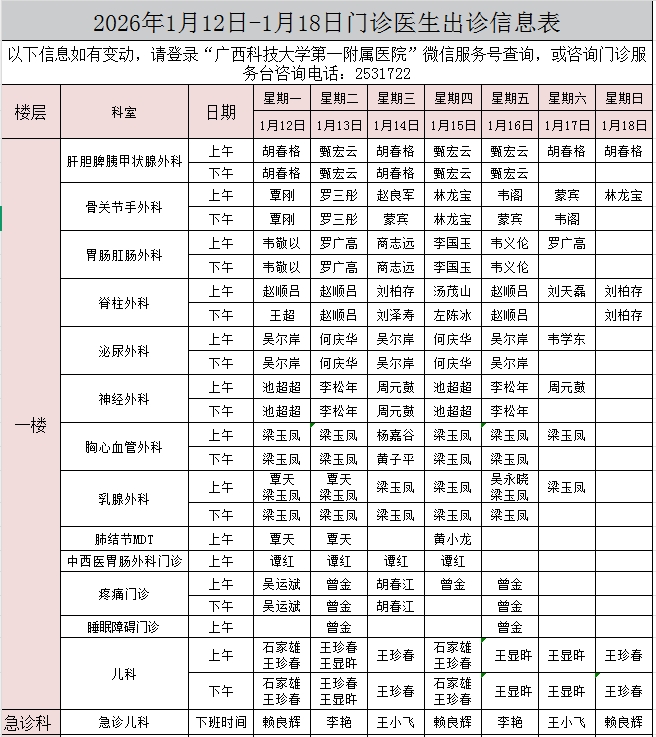 下一条:2026年1月5日-1月11日门诊医生出诊信息表