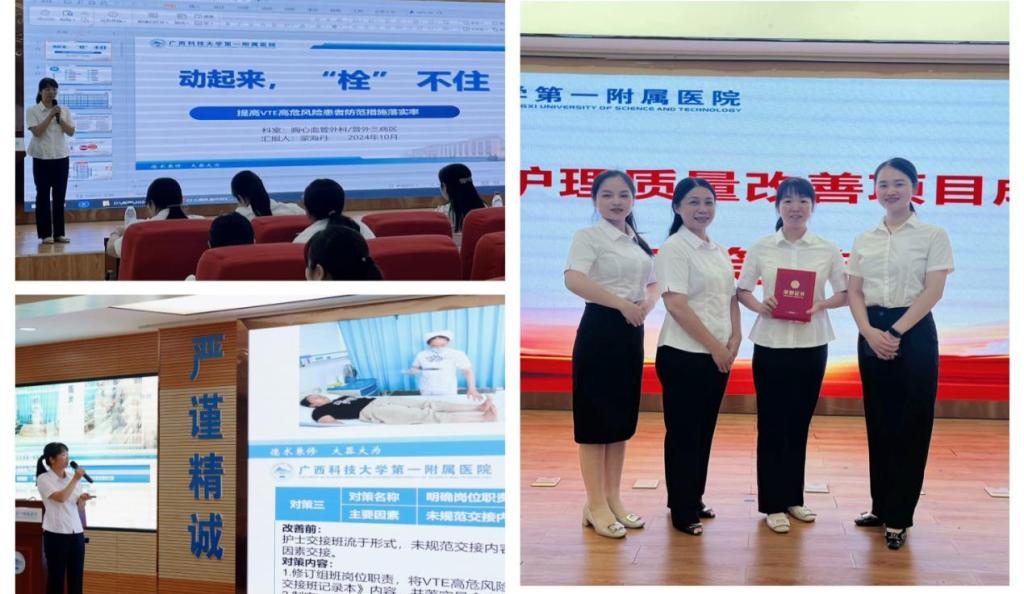 10月12日,我院护理部在医院学术报告厅举办“2024年护理质量改善项目成果汇报”评比大赛,全科室团结协作,集思广益,以“提高VTE高危风险患者防范措施落实率”为改善项目,由我科蒙海丹主管护师代表科室参赛,并取得良好成绩。