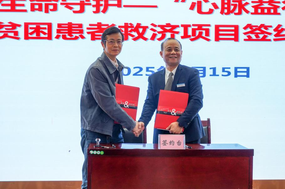 仪式上,朱清主任、赵伟秘书长向项目受益患者代表献花并授予医疗救助凭证。紧接着,在全体嘉宾的见证下,广西科技大学第一附属医院党委副书记、院长覃天与赵伟秘书长共同签署了合作协议。签约仪式的完成标志着“心脉益行”项目正式落地广西科技大学第一附属医院,未来将为更多贫困患者提供及时、有效的医疗救助。