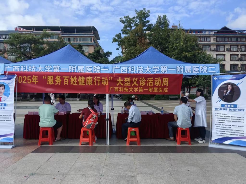 2025年9月27日上午,由柳州市卫生健康委员会主办的2025年“服务百姓健康行动”大型义诊活动在三江侗族自治县古宜镇多耶广场举行。我院集结多学科权威专家团队,聚焦群众关注程度较高的心脑血管疾病、慢性呼吸系统疾病、内分泌系统疾病、癌症、传染病、地方病、精神障碍等疾病及心理健康服务等,开展专业健康宣教与个性化咨询服务。