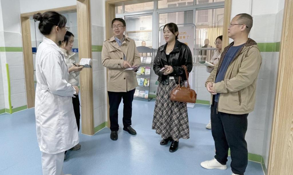 副院长陆薇(中)到友谊社区卫生服务中心召开现场办公会