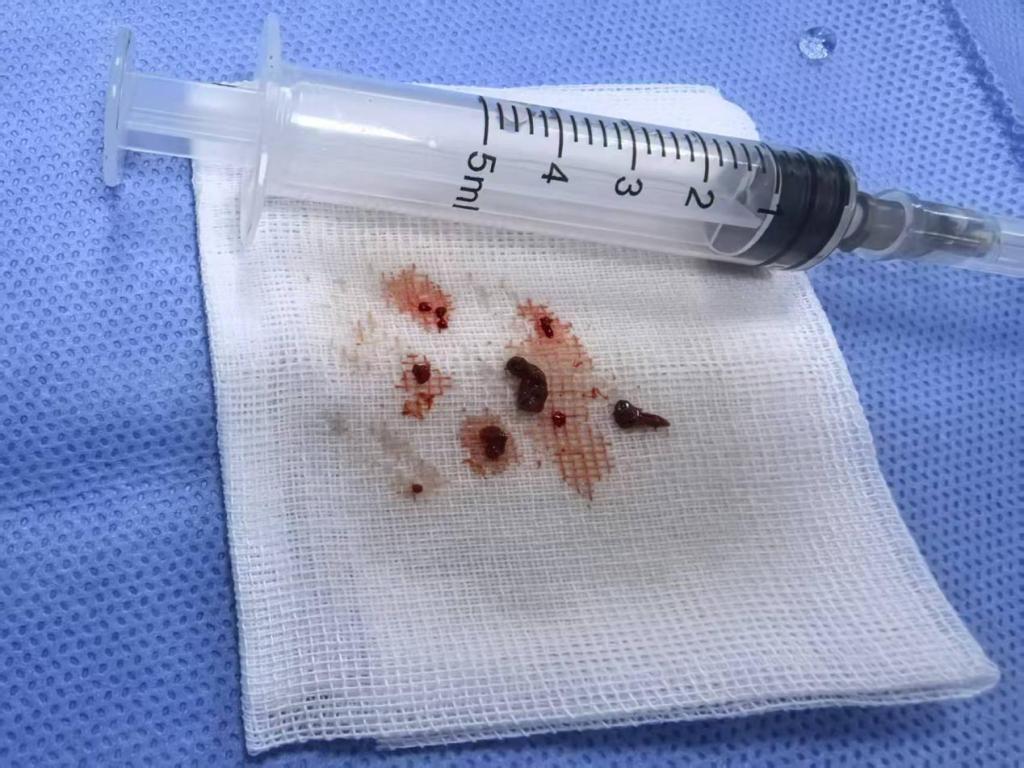 取出的左侧颈内动脉血栓