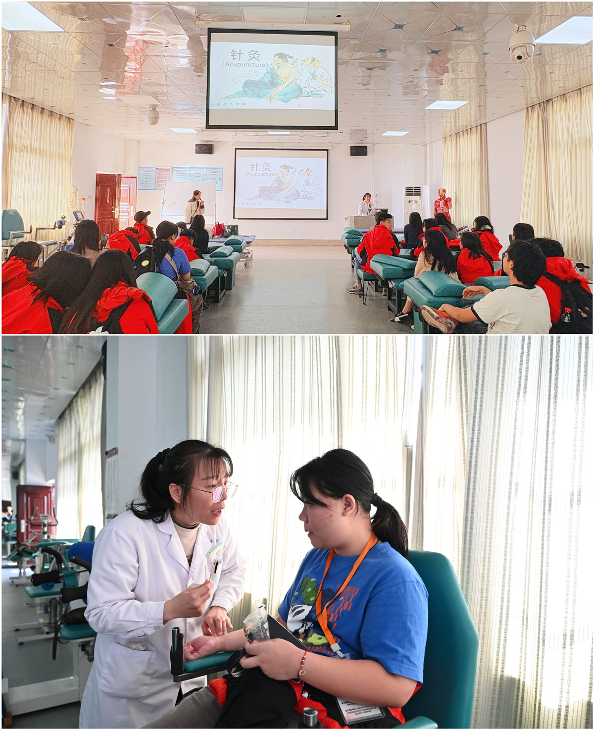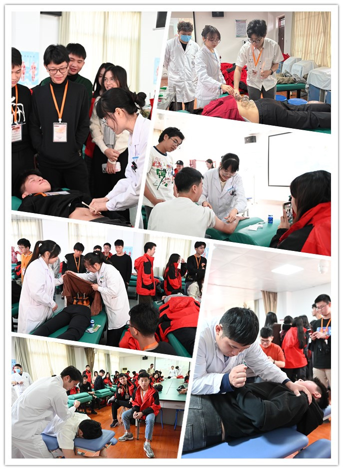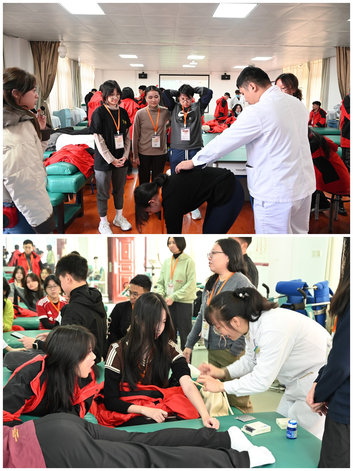在专业医师的悉心指导下,同学们第一次亲手触摸到细长的银针,了解了经络穴位的神奇;在推拿体验区,感受着力道渗透与放松的平衡;当一个个火罐吸附于背,他们惊叹于这古老技艺带来的温热与舒通。从起初的紧张好奇,到后来的全神贯注、主动尝试,同学们的眼神里写满了对这门古老医学的着迷与赞叹。