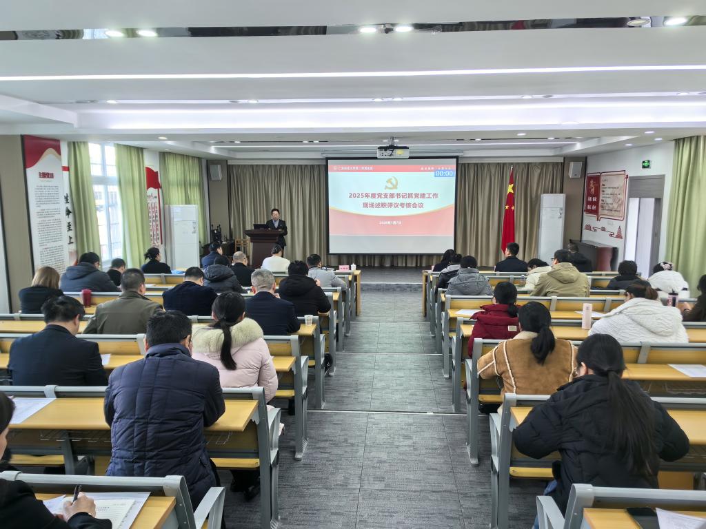 为进一步压实党建主体责任,提升基层党建工作质量,1月7日下午,广西科技大学第一附属医院(第一临床医学院)在党员活动室召开2025年度党支部书记抓党建工作述职评议会。党委副书记、院长黄进瑜等领导班子成员出席了会议。全体党支部书记和党员代表参加了会议。会议由党委副书记、副院长何曲波同志主持。