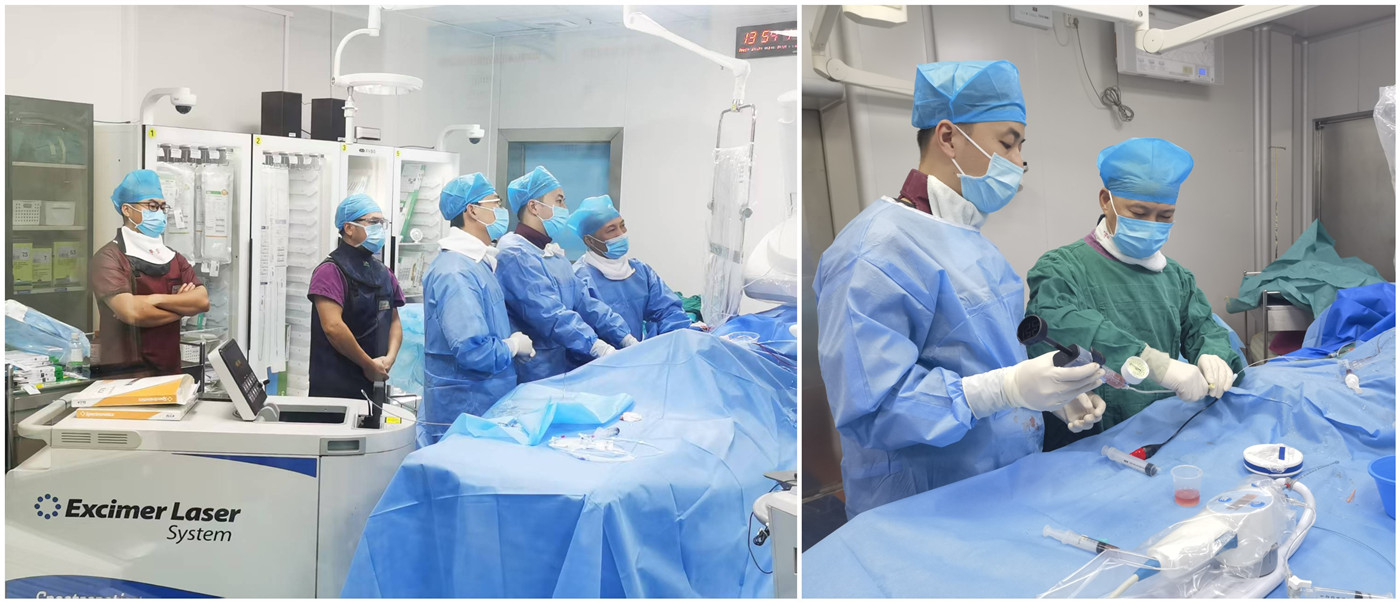 我科开展冠脉介入手术20余年,已成功开展数万例冠状动脉介入诊断及治疗手术,常规开展CTO复杂病变介入治疗、冠状动脉旋磨术、冠脉内准分子激光消蚀术、可吸收支架植入术、冠脉冲击波球囊、冠状动脉血管内超声检查(IVUS)、冠脉动脉光学相干断层成像(OCT)、定量血流分数(QFR)、冠脉血流储备分数(FFR)、药物涂层球囊扩张术、主动脉内球囊反搏泵(IABP)等介入操作。其中急诊冠脉介入千余例,特别是急性心肌梗死绿色通道介入治疗,每年急诊救治上百例、治疗成功率达到98%以上,挽救了大量病人的生命。近年来,我院冠脉介入团队已开展在体外肺膜氧合系统(ECMO)支持下的复杂冠脉介入治疗,成功为多名高危复杂冠心病患者保驾护航。
