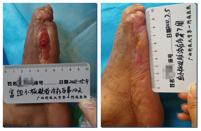 (4)自体富血小板凝胶治疗:将富含生长因子的自体血小板凝胶覆盖于软组织创面,加速愈合,疗效显著。