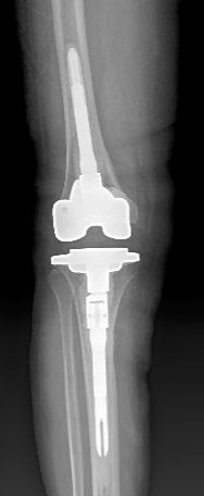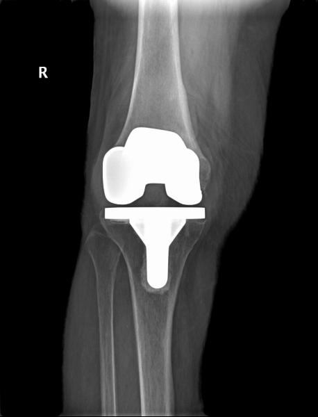 8年前刘奶奶在外院行双膝人工关节表面置换术,术后恢复良好,近2年来反复出现右膝关节疼痛,多次在柳州各大医院门诊及住院诊治,在药物治疗的干预下膝关节疼痛、肿胀时好时坏,来我院门诊诊断右膝关节置换术后感染、假体松动,入住我院关节外科/运动医学科。