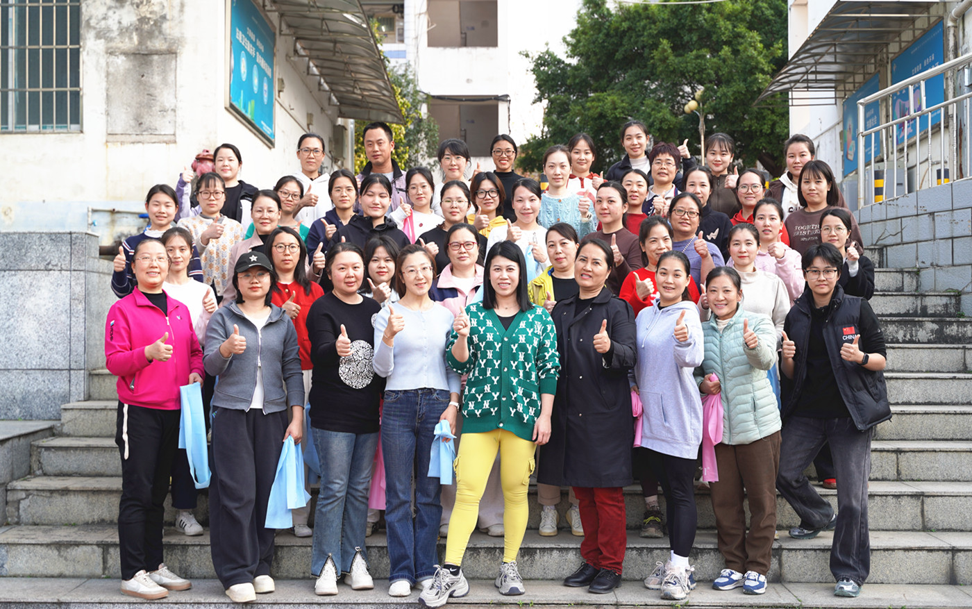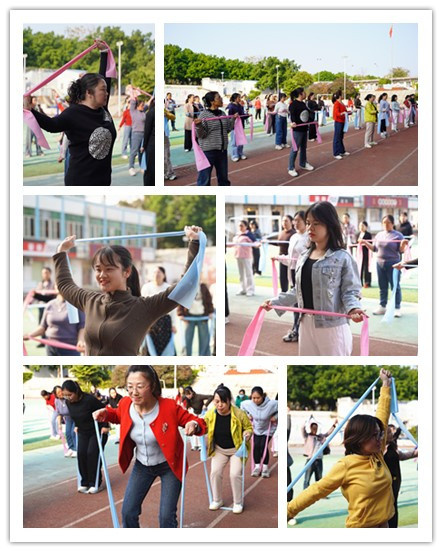 随后大家移步操场,在教练的带领下运用拉伸带开展户外健身活动。现场气氛热烈,洋溢着温馨愉悦的节日氛围。