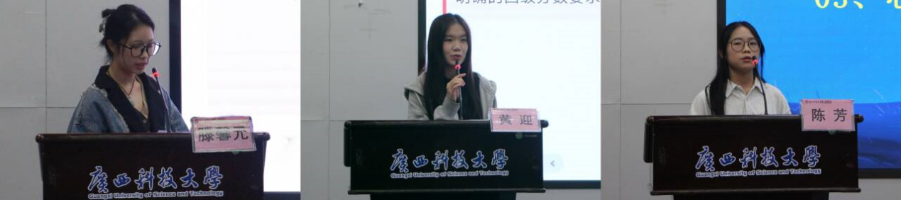 滕馨元、黄迎与陈芳三位学姐依次登台,倾情分享各自的“通关经验”。她们总结指出:词汇是基础装备,时间是重要加持,而灵活的答题技巧与出彩的高级句式,更是助力脱颖而出的关键法宝。