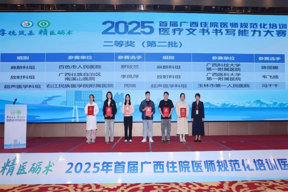 2025年11月15日,在钦州圆满落幕的首届广西住院医师规范化培训医疗文书书写能力大赛中,广西科技大学第一附属医院麻醉专业基地2023级住培医师陈丽娜凭借扎实的临床基本功、高效的临场应变能力及严谨的逻辑思维,在全区激烈的竞争中脱颖而出,荣获大赛二等奖!