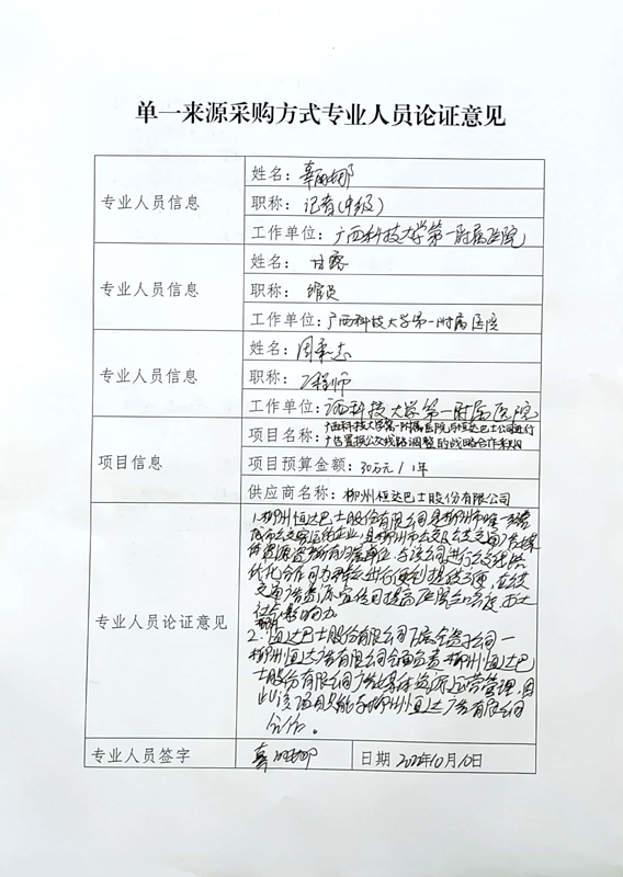 广西科技大学第一附属医院与恒达巴士公司进行广告置换公交线路调整的战略合作采购采用单一来源方式采购,该项目服务拟由柳州恒达巴士股份有限公司承担。现将有关情况向潜在供应商征求意见。征求意见期限从2022年10月11日起至2022年10月18日止。